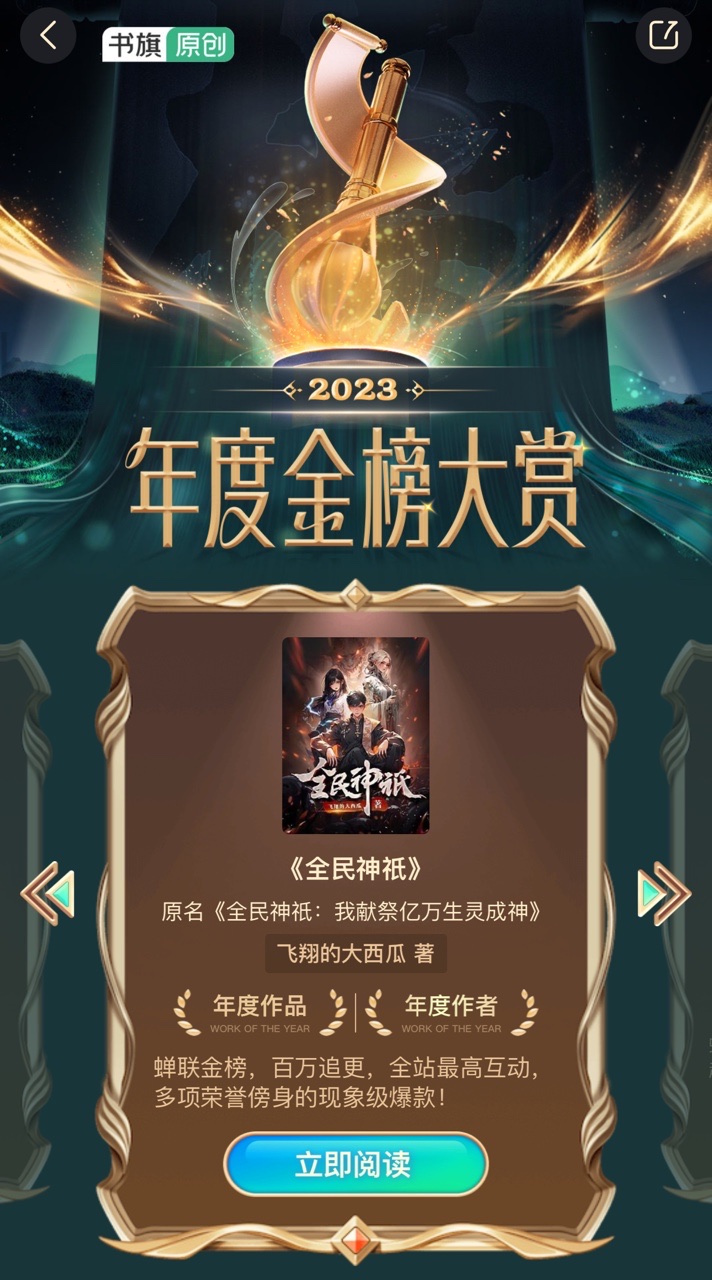 书旗小说2023年度金榜奖项揭晓 持续培育潜力作者