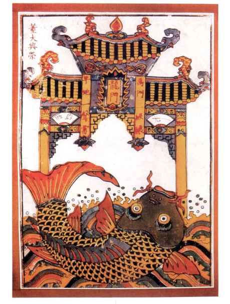 图3:四川夹江年画鲤鱼跳龙门。图片源于网络,
