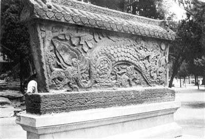 铁影壁迁移后,列置于北海一隅旧影,摄于1949年前后 |