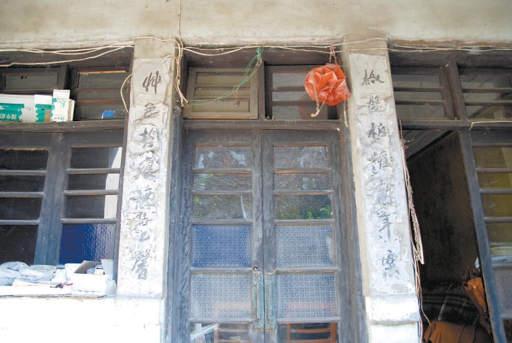 站在戴家最前面一进小园里,可以看到正前方隔着一幢门面房就是拔地而起的新式大厦,玻璃幕墙,闪闪耀光。门面房前是安顺的主干道之一中华东路,据说戴家的宅园正门即在中华东路45号。至此可知,戴家原有住宅坐北朝南,第一进是沿街的店铺,开的是“同德号”绸缎铺,然后是二三四进院落,最后是大花园。