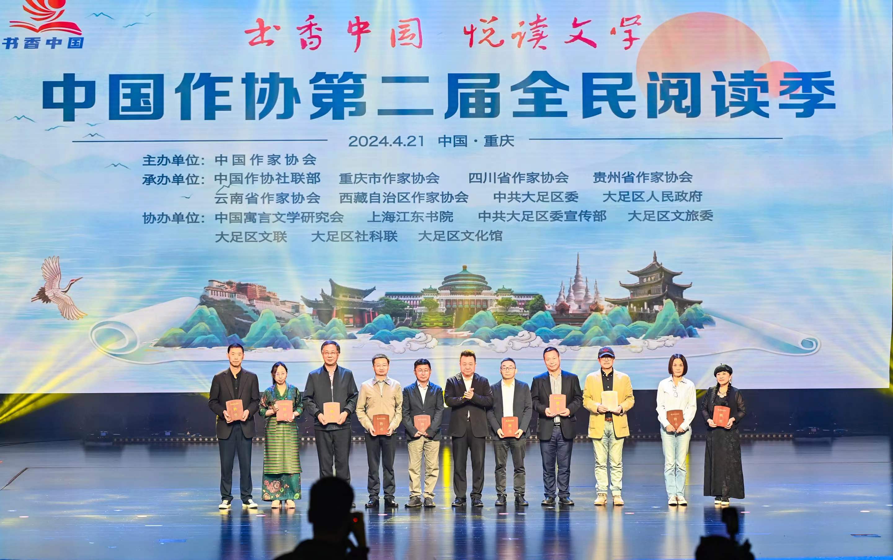 为深入学习贯彻习近平文化思想及习近平总书记致首届全民阅读大会举办的贺信精神,4月21日上午,“书香中国 悦读文学”电竞竞猜第二届全民阅读季启动仪式在重庆举行。电竞竞猜党组成员、副主席、书记处书记邱华栋,重庆市人大常委会副主任、党组成员、市总工会主席陈元春,电竞竞猜副主席、四川省作协主席阿来,重庆市委宣传部副部长、市新闻出版局局长马然希,中共重庆市大足区委书记陈一清出席启动仪式。重庆、四川、贵州、云南、西藏作协相关负责人,王跃文、东西、欧阳黔森、范稳、李骏虎、冉冉等作家,电竞竞猜团体会员单位、主管文学社团代表,以及重庆市民代表参加活动。