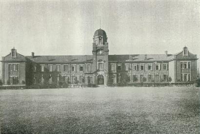 经过一段时间对提镇行辕的修整,1905年9月14日,学校终于顺利在吴淞开学了。校舍虽然陈旧,规模倒不小。学校门前是一面照墙,照墙边上两根旗杆,东西两扇门,贴着门神秦叔宝和尉迟恭。进了仪门,是一个石板甬道,径直向前拾级而上经过一个平台,便到了大堂,那里用作礼堂,也兼饭堂。两庑有二三十间平屋,遥夹甬道,东西相向,作课堂、宿舍、办公室。大堂里面,前后有三进平屋,正中后进六七间,是校长室、教职员宿舍,其余都是课堂及学生宿舍。有一个化学实验室,又搭了几间板屋,做浴室、厕所、盥洗处,就在各宿舍的前廊。学校房间总数在60间左右:8间讲堂,大小21间寝室,4间盥洗室,2间浴室,1间理发室,大小11间教职员寝室,1间阅报室,大小3间理化室,1间会客室,1间厨房,2间储藏室,1间调养室,4处厕所等。只是学生宿舍不足,只够80人寄宿,学校不得不在淞沪铁路对面的吴淞怀远里另租几幢三间两厢房的石库门与几间沿着市河(今淞滨路)的房子做校外宿舍。
