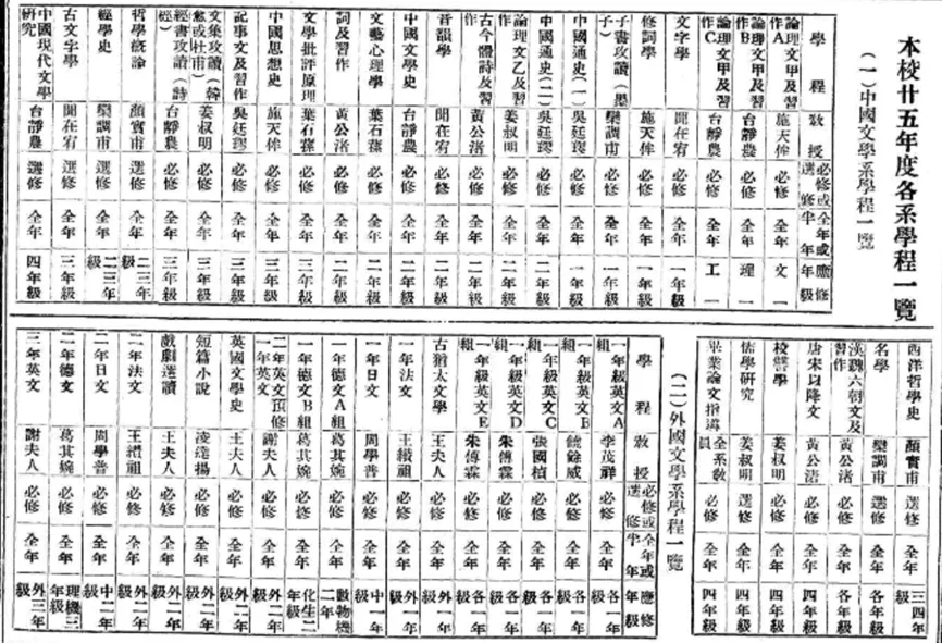 台静农1936-1937学年所授课程,《台静农先生学术艺文编年考释(附台静农别集)》记为诗经、中国文学史、历代文选等,其实不甚准确。