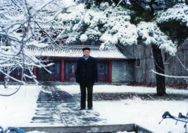 1983年5月7日,王瑶70岁生日当天摄于北京大学未名湖畔