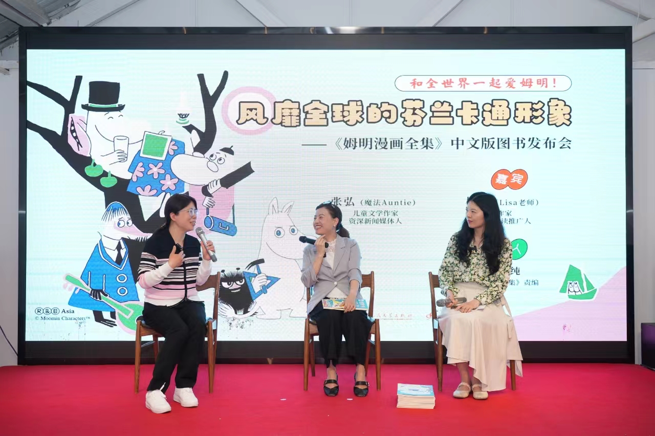 本次活动由人民文学出版社·九久读书人联合Rights and Brands Asia(RBA)和Moomin Characters主办,庆祝《姆明漫画全集》中文版图书的全新发布。发布会由《姆明漫画全集》责编王雪纯主持,儿童文学作家张弘和早期阅读推广人杨涤作为嘉宾进行了探讨和交流。