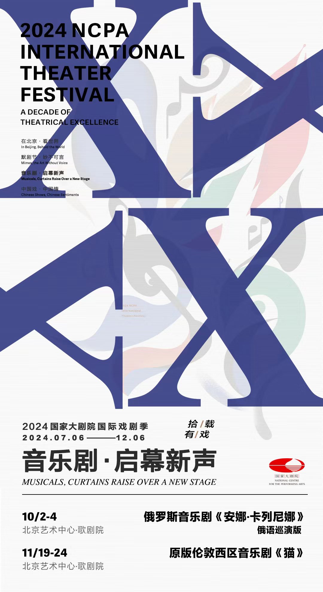 随着北京艺术中心在国家大剧院“一院三址”的新格局下盛大启航,本届国际戏剧季为其量身打造了“音乐剧·启幕新声”板块,这也是音乐剧这一艺术门类在国家大剧院舞台的首秀。在该板块中,两部来自俄罗斯和英国、汇集顶尖阵容的音乐剧作品将与广大观众见面。俄罗斯音乐剧《安娜·卡列尼娜》俄语巡演版将于中俄建交75周年纪念日重磅亮相。音乐剧传奇《猫》的原版回归,将再度点燃舞台,续写其不朽传奇。此外,本届国际戏剧季在北京艺术中心这一艺术新地标还特设了新单元“默剧节·妙不可言”。在“节中节”里,英国再·剧团演出音乐肢体剧《笑忘书》与瑞士巴卡拉小丑剧团演出《欢喜冤家》将欢乐上演。《笑忘书》以极其浪漫动人的手法讲述了一个有关患有阿尔兹海默症人士的故事,以肢体和默剧为表达方式,配合现场音乐,营造充满魔力、诗意的氛围;《欢喜冤家》则以充满幽默的喜剧表演,为观众带来一场包含马戏、高空杂技、小丑、杂耍等多种元素的演出。在中秋节假期期间,两部作品同天错时段登陆北京艺术中心,可以让观众一天内领略两场不同风格的默剧表演。