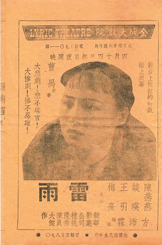 一九三八年,最早的电影版《雷雨》由新华影业公司出品,该片由方沛霖导演,陈燕燕等主演