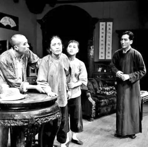 一九五四年,北京人艺版《雷雨》首演,夏淳任导演,朱琳饰鲁侍萍(右三),于是之饰周萍(右一)