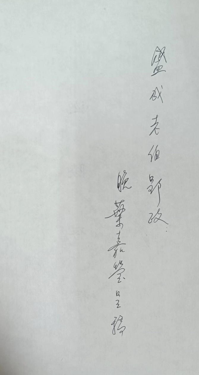 上世纪90年代,叶嘉莹先生特地去北京看望了盛成老伯和他的夫人李静怡女士,盛成老伯热情地邀请叶嘉莹一起吃饭,并留影作纪念。也许该书稿是那个时期,先生特意赠给盛成老伯存念的。