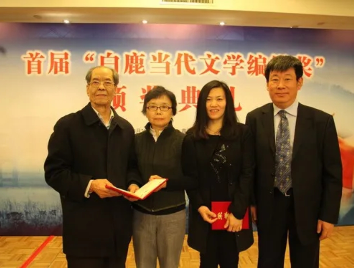 陈忠实先生、管士光先生与两位获奖编辑合影
