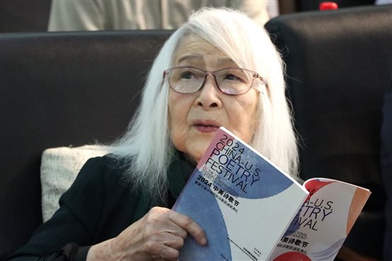 8月14日下午,2024中美诗歌节暨第七届“中坤国际诗歌奖”颁奖典礼在北京大学人文学苑举行。中国诗人灰娃和美国诗人珍·赫什菲尔德(Jane Hirshfield)荣获本届中坤国际诗歌奖奖项。典礼现场,来自中国和美国的80余位诗人和诗歌评论家,出版界、艺术界人士齐聚此次诗歌盛典。中国诗人灰娃以98岁高龄,亲临现场接受领奖。颁奖典礼由北大中文系教授姜涛主持。
