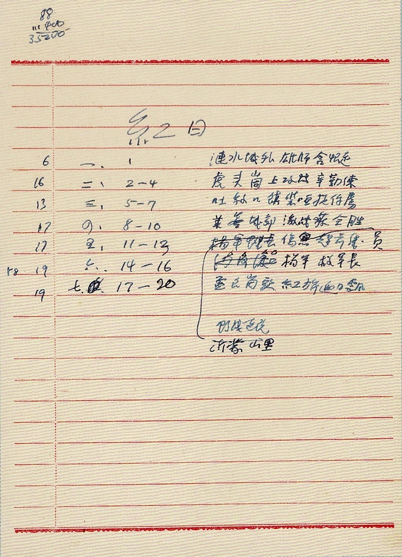 在一页红格稿纸上,陈梦家开始编写剧本《红日》的开场:
