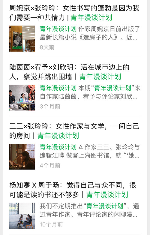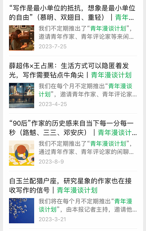 部分“青年作家漫谈计划”话题