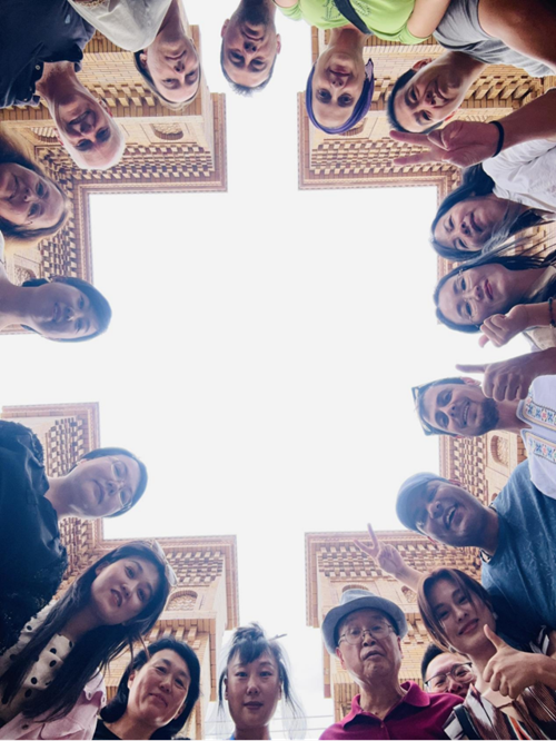 在英吉沙县阿迪力瓦孜艺术传承中心合影。(摄影:刘雅)