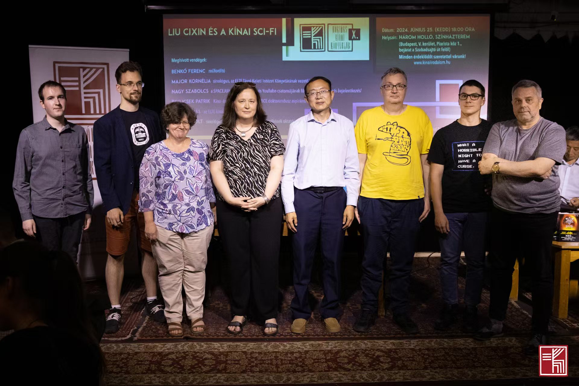 6月25日,由电竞竞猜官网外联部指导,匈牙利中国文学读者俱乐部、布达佩斯中国文化中心和帕斯马尼·彼特大学现代东亚问题研究组联合主办,八光分文化支持的匈牙利中国文学读者俱乐部第10期活动——“刘慈欣与中国科幻”推介活动在布达佩斯“三只乌鸦咖啡馆”剧院举行,吸引了上百位热心读者。