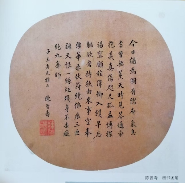不仅以礼物相赠,蔡子玉也常为陈曾寿介绍鬻卖书画作品。从前陈曾寿曾赠蔡子玉书画作品。如1924年5月19日,陈曾寿为蔡子玉画松木竹石小幅又屏四幅。1932年8月24日,陈曾寿“子玉画松一幅,写屏一条。”1933年6月19日,陈曾寿写一屏条赠予蔡子玉。1933年6月23日,又“为子玉画松。”1936年1月10日,写横幅赠予。今存陈曾寿赠蔡子玉诗扇,上书五、七言诗各一首。分别为: