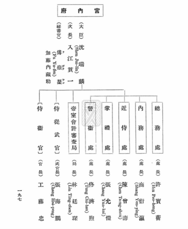山田好文《满洲国皇帝を迎へ奉りて》(1935)所载伪满宫内府官员一览表