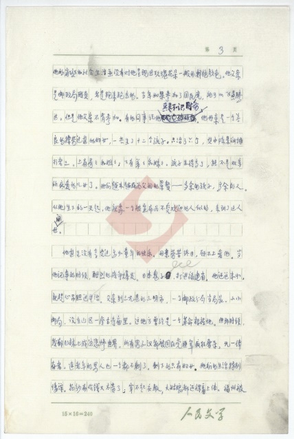 面对着这部手稿,笔者好像看到一位63岁的老人是怀着怎样的激情在稿纸上进行着创作。这位老人是多么希望用自己手中的笔热情地讴歌陈景润——这位“可爱的数学家”。