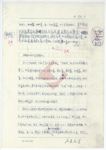 该稿共43页,作者用蓝黑墨水在“人民文学15X16=240”的稿纸上进行创作。每张手稿右上角均有页码标识,其中包括第1-37页,第39-44页。不知什么原因,该稿并没有第38页。经笔者细读,并与《人民文学》上发表的《哥德巴赫猜想》对照,发现该稿第37页与第39页的内容前后连贯,很有可能是作者将第38页错标为第39页。