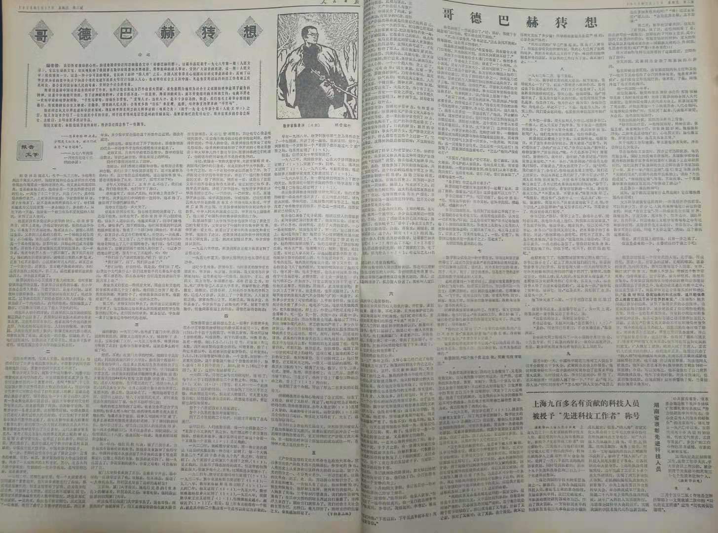 1978年1月,《人民文学》杂志在新年第一期头条发表了老作家徐迟的新作:报告文学《哥德巴赫猜想》。该文讲述了数学家陈景润不平凡的人生经历(他的童年、求学生涯,以及被华罗庚赏识,进入中国科学院数学研究所的过程。),“哥德巴赫猜想”的内容和发展历史,以及陈景润是如何在“文化大革命”期间,在艰苦环境下通过顽强努力取得了(1+2)的证明过程(文革中,陈景润受到各种诽谤、遭遇了许多困难和他的生活十分艰辛,以致身患重病,后来在毛主席的指示下住院治疗。)。