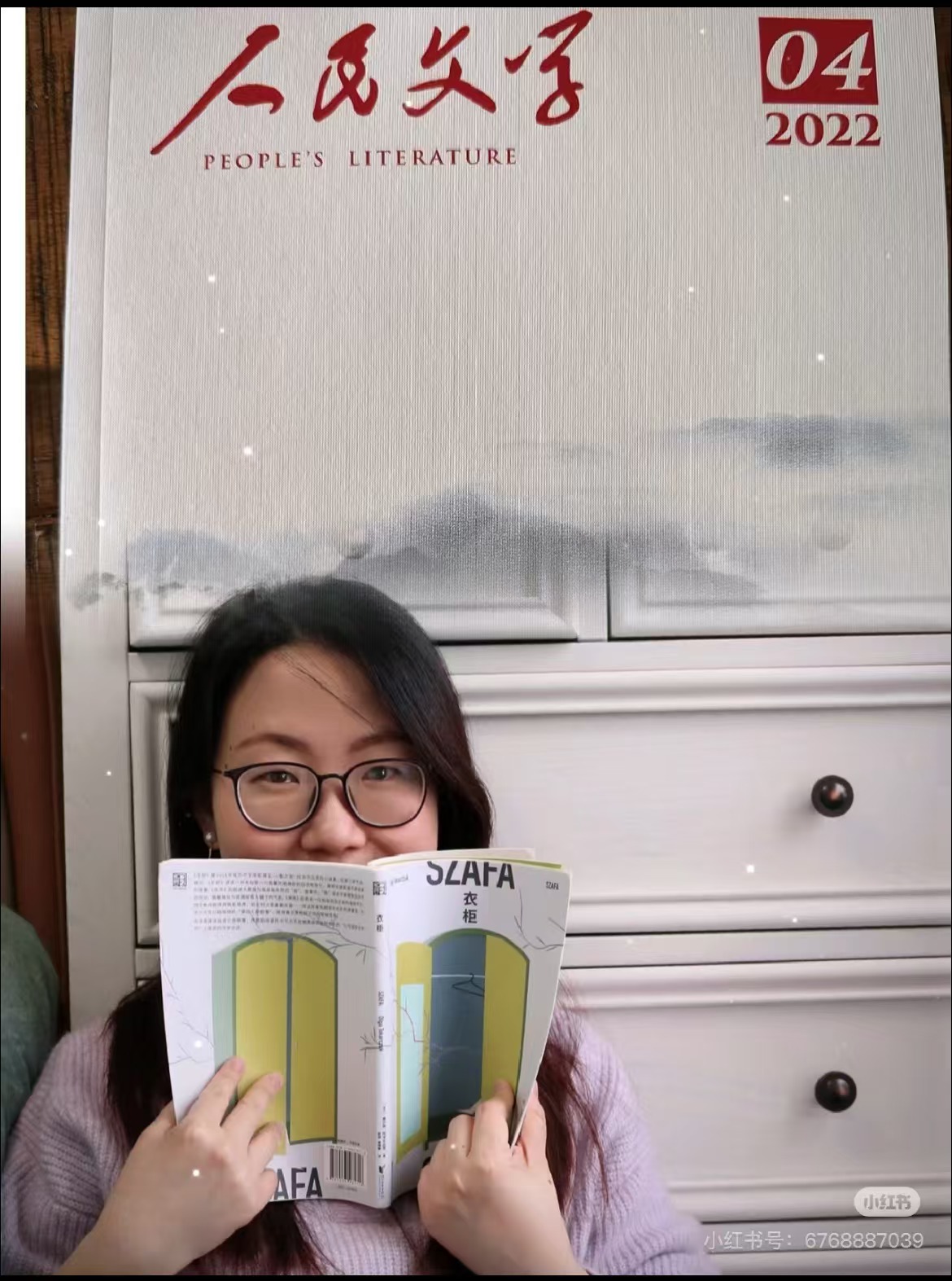 关注到龚万莹是在某天刷小红书时,偶然看见一篇标题为“积累了30万字后,我终于登上《人民文学》啦!”的帖子,封面图是一个戴着黑框眼镜、眼角含笑的女孩,手中一本名为《衣柜》的书遮住了半个清秀面庞。她背靠着一个衣柜,衣柜上方则是当期《人民文学》封面。