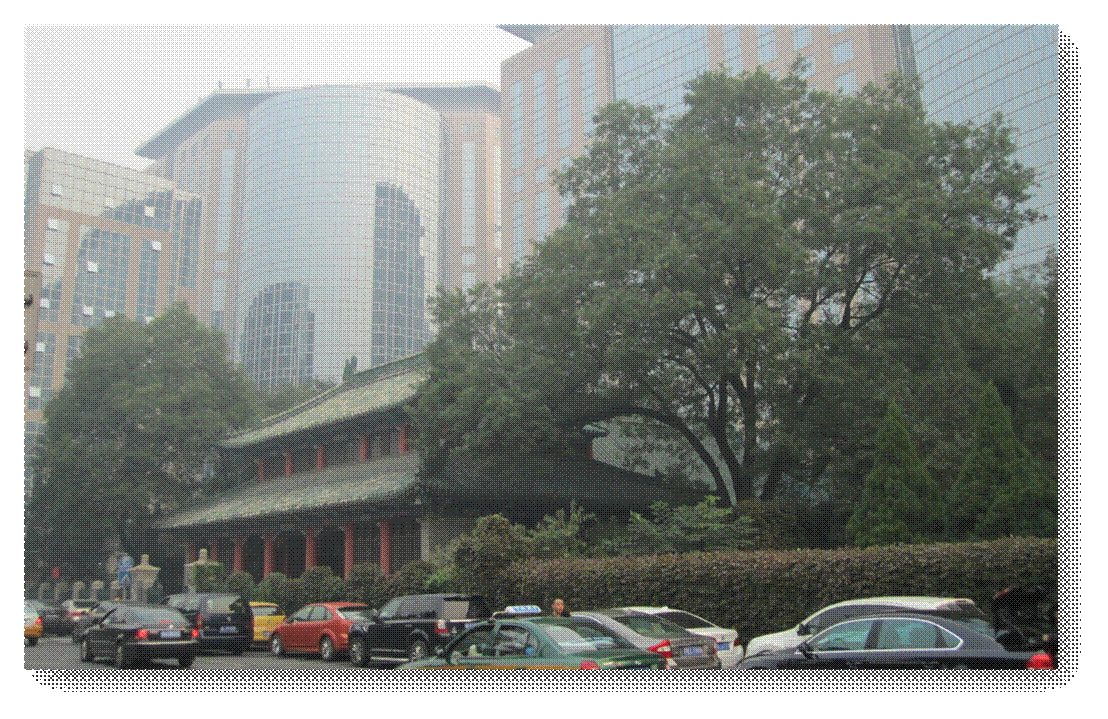 这张照片是我自己拍的,前面这个应该是庑殿顶的建筑吧,这是协和医学院,后面的大玻璃外墙的是东方新天地,咱们通常看到的东方新天地都是从长安街上一侧,是它朝南的一面,这是它朝北的一侧。协和医院是一个古香古色的、中国传统风格的建筑,但是它的背景却是一个美国式的摩天大楼。我不认为这是一种成功的混搭,反而觉得是一个非常失败的开发。单独拿出来这个建筑来说,它们都没得说,但是因为它是个房子,它周围是要有邻居的,那和这个邻居放在一起,我觉得这个房子就不该在这里,除非把周围的邻居都搬走。