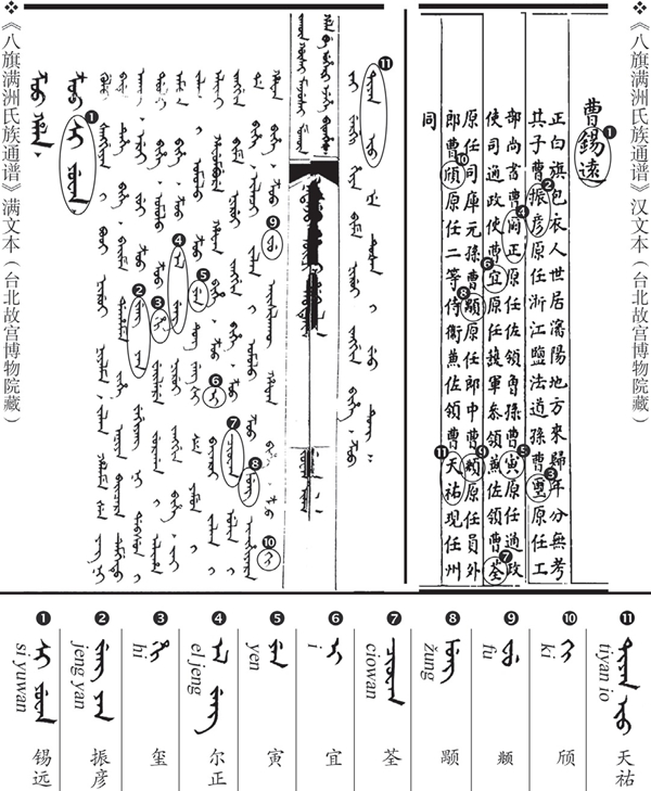 图表1.6 《八旗满洲氏族通谱》中曹锡远家族的满汉名