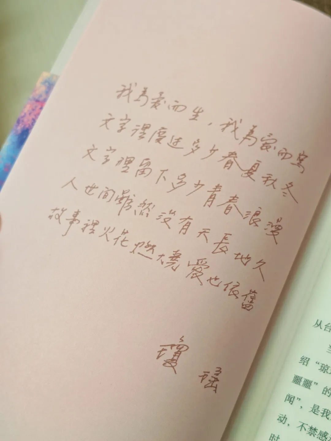 是的,活到生命的最后一段日子,我是快乐的、自由的、翩然的。从二〇一五年到今天,足足九年了,我终于走出了伤痛。“三年养伤血淋淋,过去恩爱无法断”,是我在《我的心灵密码》里写过的句子。不过,《我的心灵密码》已被冷藏,我从没有让人知道我在“养伤”。伤痛在生命里是一种“淬炼”,没经过伤痛淬炼的人,都是不成熟的。总算“两岸猿声啼不住,轻舟已过万重山”!我熬过来了!今天的我,很满足,因为,我有一片天!因为,我始终相信爱!我这个“爱”字,包含很广,国家、社会、家庭、朋友、读者、粉丝…… 我一直付出很多的爱,也一直收获很多的爱!这一生,值了!
