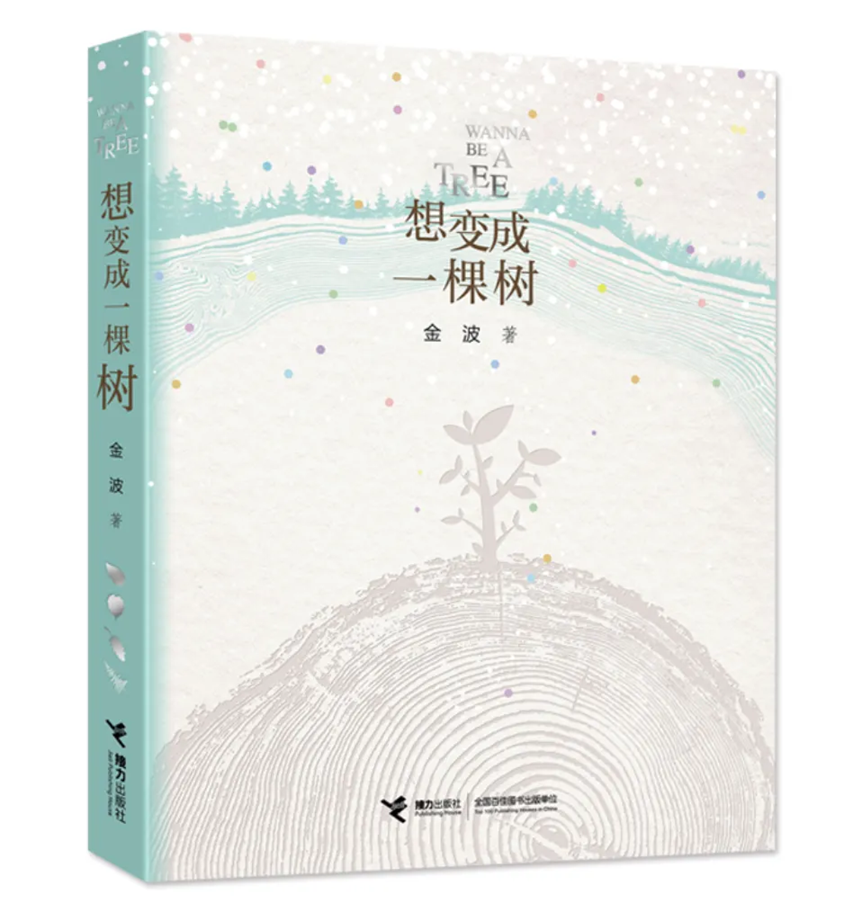 很“树”的封面:凹凸有致的外封由树的年轮荡漾开去,木质感岁月感十足的某一圈年轮萌生出一棵小树,只有五六根短短的枝条上面几片小小的叶子,一如耄耋之年的金波灵魂深处的童年。在经历若干“空白”的荡漾之后,细密的年轮之外是一片茂密的森林,无数绚丽的点点零散地点缀着整个画面:璀璨如星、缤纷如雪、弥漫如思……更似金波与树之间的对话——WANNA BE A TREE——《想变成一棵树》。外封的背面是一片绿色:无尽的森林——你自然地被融进去了,情不自禁地深深吸上一口气:我也想变成其中的一棵。