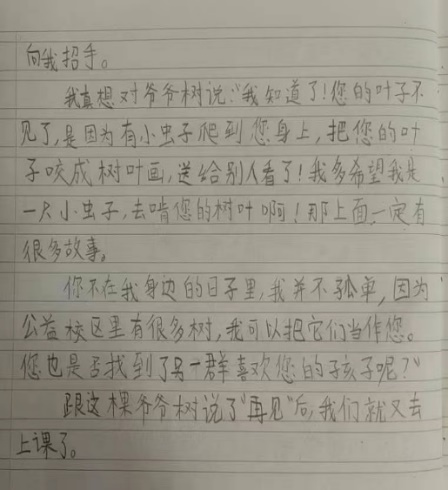 金波爷爷,我每天都能看见您,因为我把枫杨树看成了您。