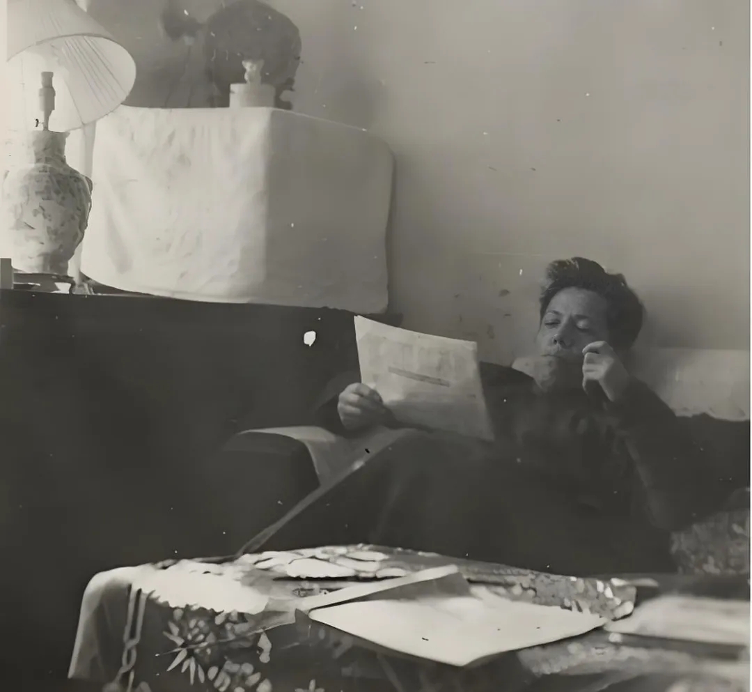 王瑶先生读报,摄于北大中关园寓所