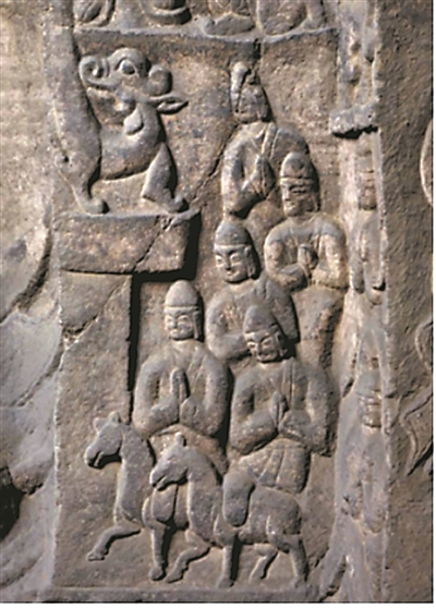 在西域诸国中,粟特人以善于经商闻名。粟特位于中亚阿姆河和锡尔河之间的泽拉夫珊河流域,大约在今乌兹别克斯坦境内,地处欧亚大陆交通枢纽。得天独厚的地理优势,令粟特人成为丝绸之路上的重要贸易者,推动中原与西域交流互动。十六国以来,粟特商人曾活跃在凉州(今甘肃武威)一带。太延五年(公元439年)北魏太武帝平定北凉后,粟特商人及亲属随民众一起迁至平城(今山西大同)。从商人的形象及文献中对粟特人善于经商的记载来看,这支商队或许便来自粟特。