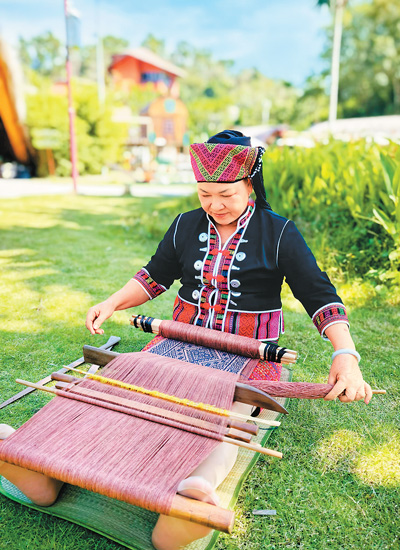 这几年,五指山加强黎锦人才培养,建立国家、省、市三级非遗名录体系,目前,全市有黎锦技艺代表性传承人66名,3500多人掌握黎锦技艺。非遗工坊遍地开花,黎锦产业链日益成熟,助力乡村全面振兴。
