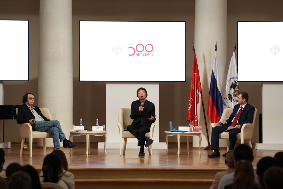 在俄罗斯访问期间,刘震云来到具有300多年历史的圣彼得堡国立大学,接受了由校长克罗帕切夫授予的圣彼得堡国立大学名誉博士学位,并参加了由圣彼得堡大学和俄罗斯中国文学读者俱乐部共同举办的“俄罗斯与中国:文学创造中未来的形象”文学研讨会。研讨会由罗季奥诺夫主持,由刘震云和俄罗斯作家阿斯特瓦察图罗夫对谈,吸引了圣彼得堡中国文学读者300余人参加。