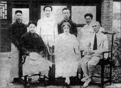 罗素在北京与讲学社同仁合影。前排右起:罗素、勃拉克、蒋百里。后排右起:孙伏园、王赓、赵元任、瞿世英。照片由作者提供