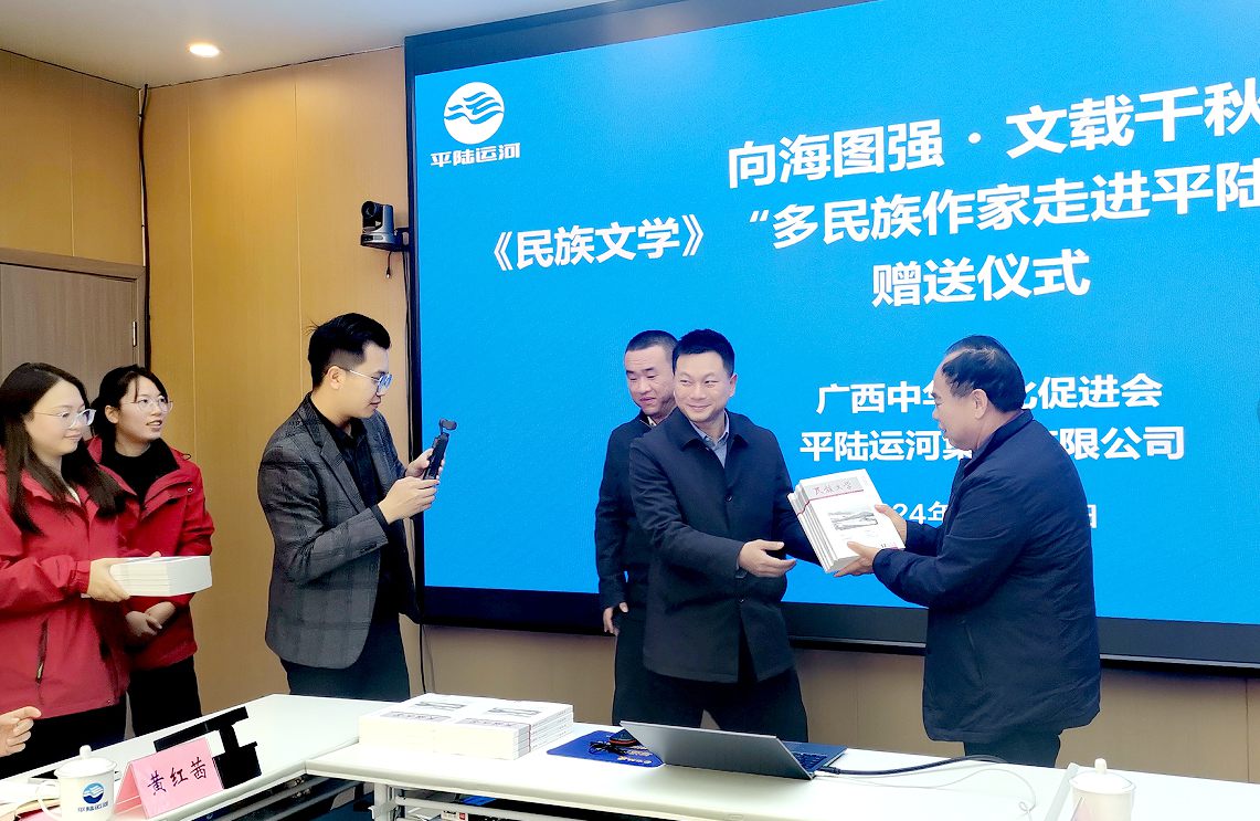 2024年12月31日,《民族文学》“向海图强 文载千秋 多民族作家走进平陆运河作品辑”赠送仪式在平陆运河工程建设指挥部举行。
