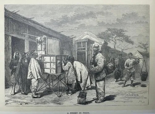 约翰·汤姆逊《拉洋片》,版画,1880年代