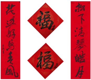中国美术家协会副主席、河北省美协主席祁海峰书对联: