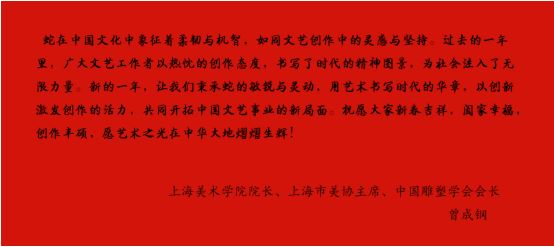 蛇在中国文化中象征着柔韧与机智,如同文艺创作中的灵感与坚持。过去的一年里,广大文艺工作者以热忱的创作态度,书写了时代的精神图景,为社会注入了无限力量。新的一年,让电竞竞猜秉承蛇的敏锐与灵动,用艺术书写时代的华章,以创新激发创作的活力,共同开拓中国文艺事业的新局面。祝愿大家新春吉祥,阖家幸福,创作丰硕,愿艺术之光在中华大地熠熠生辉!