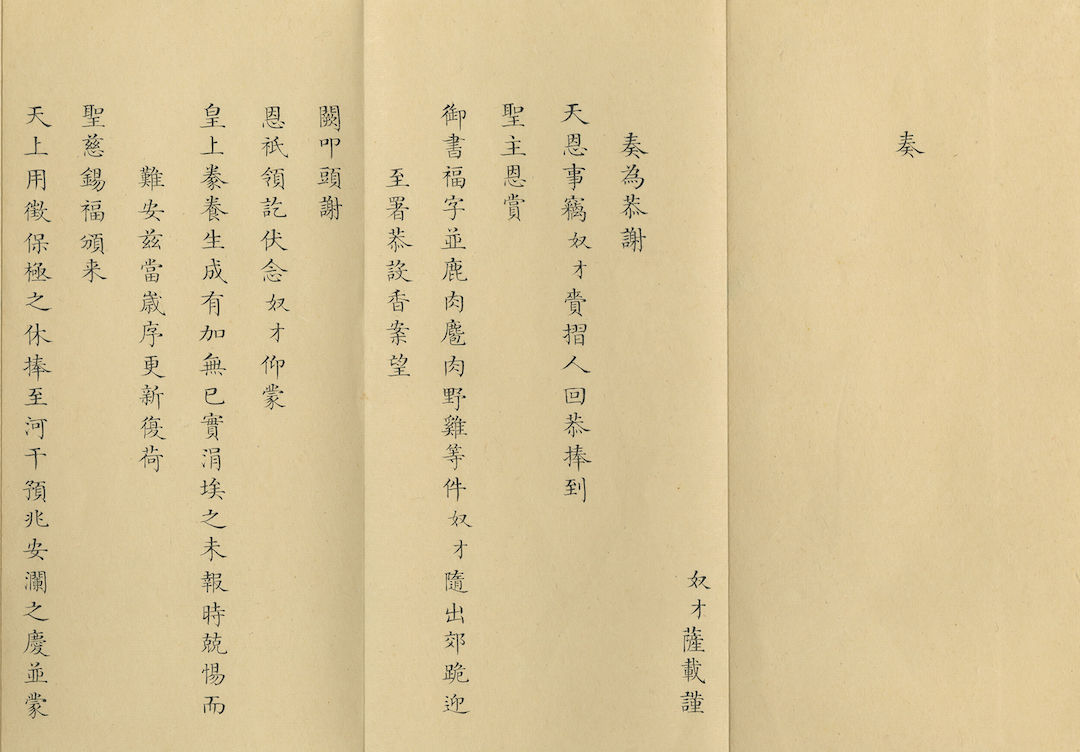 奏为恭谢恩赐御书福字及鹿肉等物事 清乾隆四十二年一月九日 萨载