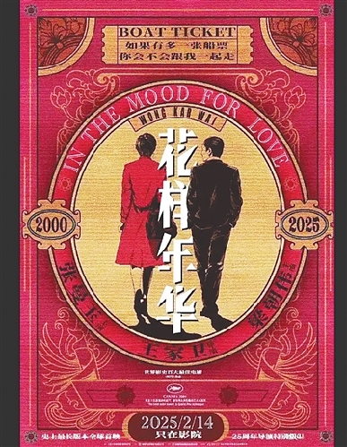 电影《花样年华》25周年导演特别版正式上映,在元宵节发布的那款海报,还原了片中苏丽珍和周慕云并肩同行的经典画面。颇富意味的是,这次苏丽珍没穿旗袍,而是换了一件现代风衣。单是这款海报的设计,已足够引发影迷追索的欲望,毋庸再提影片关联了《重庆森林》,且以《蓝莓之夜》为精神续集。首日票房3000万,便是影迷对于这份追索的具象解读。影片新加的5分钟新片段里,苏丽珍的吃与送出及取回钥匙的画面干脆利索,甚至显出一些粗鄙,完全颠覆了首映版《花样年华》的欲说还休,雾里看花,层峦叠嶂。这或许是导演王家卫写给时光的暗语?毕竟过去了25年,他曾说过,电影是写给时间的一封信。