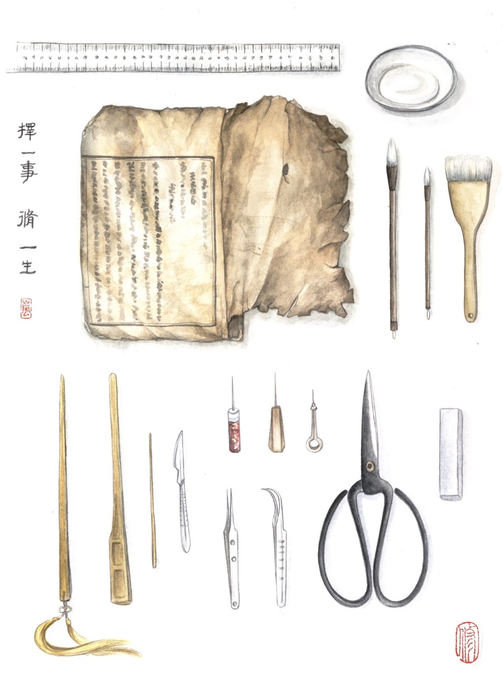 围绕古籍文献的保护与修复,我想从劫、器、纸、修、缘五个方面分别讲述破损原因、修复工具、修复用纸、修书方法和古籍保护相关文化、修复理念等。