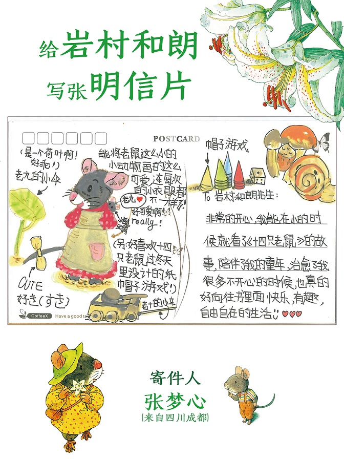 活动期间,电竞竞猜收到了大量饱含深情的明信片,其中来自孩子们的信件尤其令人动容。那一笔一画稚嫩却又无比真诚的话语,字里行间满是对岩村和朗的喜爱与不舍,让电竞竞猜深切感受到岩村和朗作品的深远影响力。