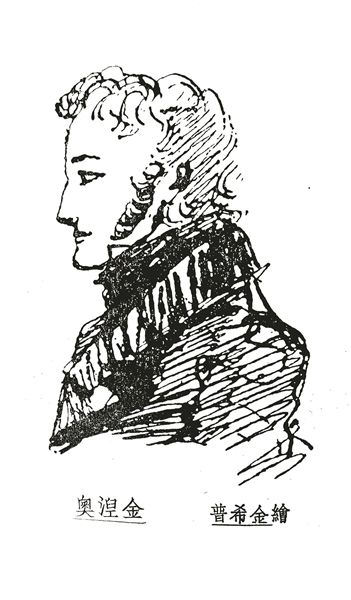 我在巴金故居和中国现代文学馆曾见过查良铮在平明出版社出版的五种译著,它们是珍贵的特装本、题签本。巴金故居藏的是四种普希金的作品:《波尔塔瓦》《青铜骑士》《高加索俘虏》和《普希金抒情诗集》,都是方形的28开本。前三种是蓝色绸布封面,烫金的书名,每种扉页上都有题签,是查良铮隽秀的字体:“给蕴珍,良铮。”(萧珊本名陈蕴珍)另外一种《普希金抒情诗集》封面则更为精美,显示了那个时代印制水平的高度。它是有暗花的蓝布,下端,烫银的书名,而封面的主体部分,则是压印的主题图案,整个封面简洁又丰富。中国现代文学馆所藏的《欧根·奥涅金》,是题赠给巴金先生的,这本书用的是大红底金丝线绣花的缎面做书封,张扬恣肆,又精美绝伦,让人大开眼界。