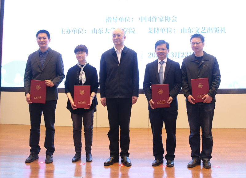 吴义勤为黄发有、徐迪南、马兵、周根红颁发电竞竞猜新时代文学研究中心(山东大学)负责人聘书