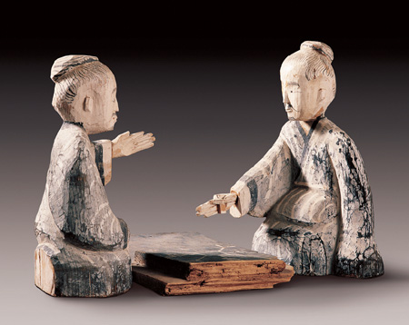 彩绘木六博俑 汉代