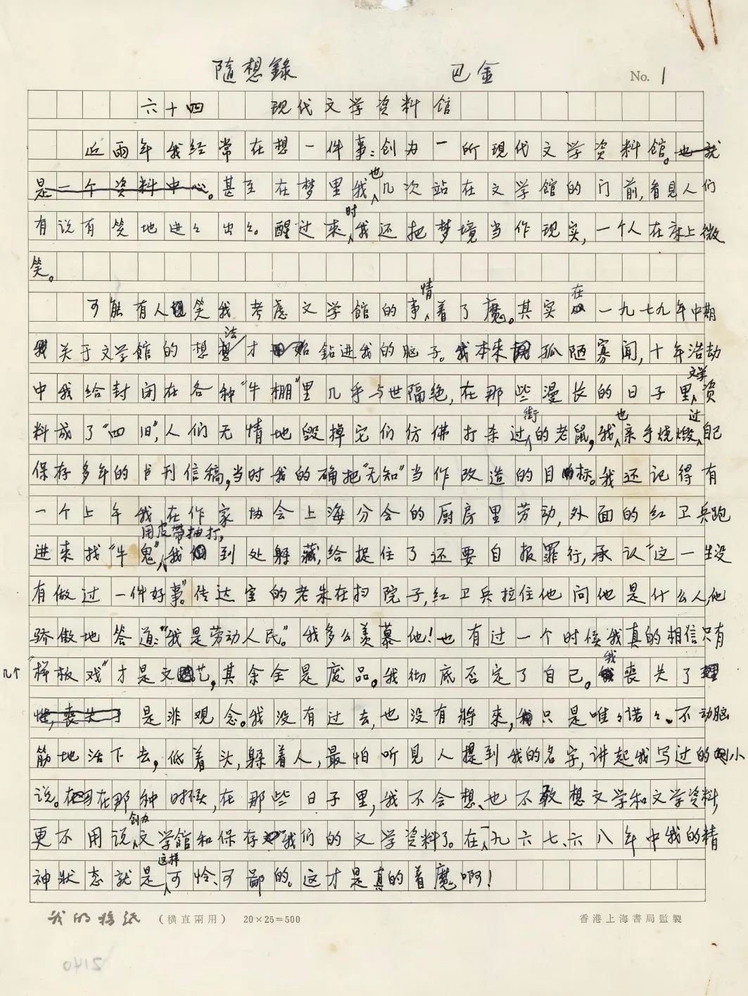 巴金《现代文学资料馆》手稿