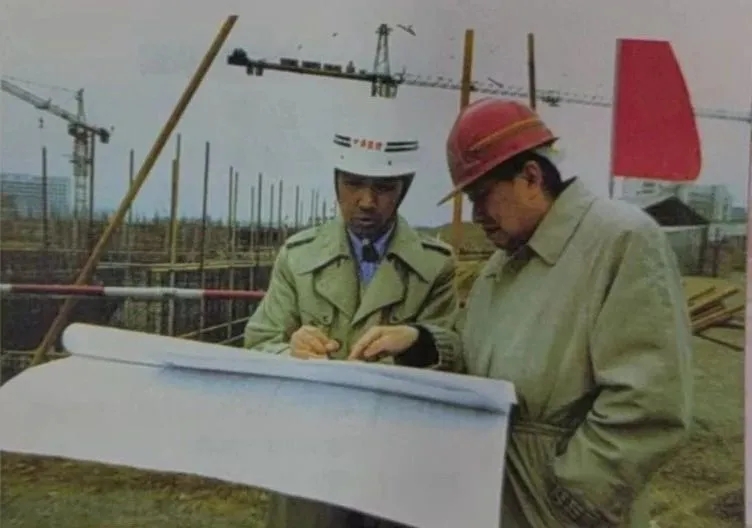 1998年初舒乙、许绍亚在新馆工地例行检查工程进展。