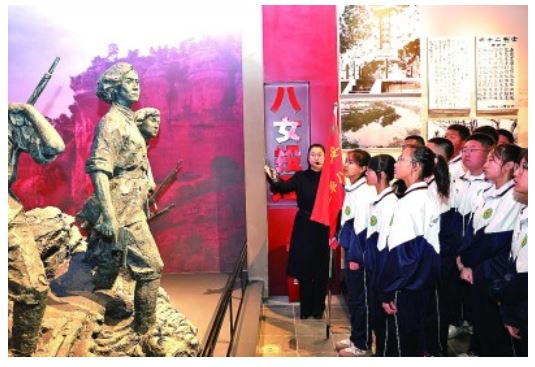 4月3日,辽宁省本溪市本溪满族自治县抗联中学的学生在东北抗联史实陈列馆参观。新华社记者 李钢摄