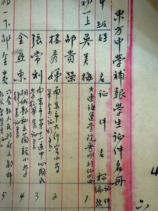 手写《南京东方中学补报登记名册》(1952),笔者收藏